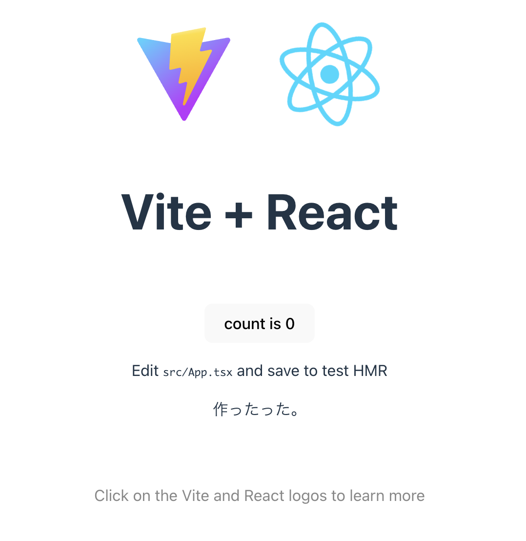 ブラウザで http://localhost:5173/ にアクセスすると以下のような画面が表示されたと思います。